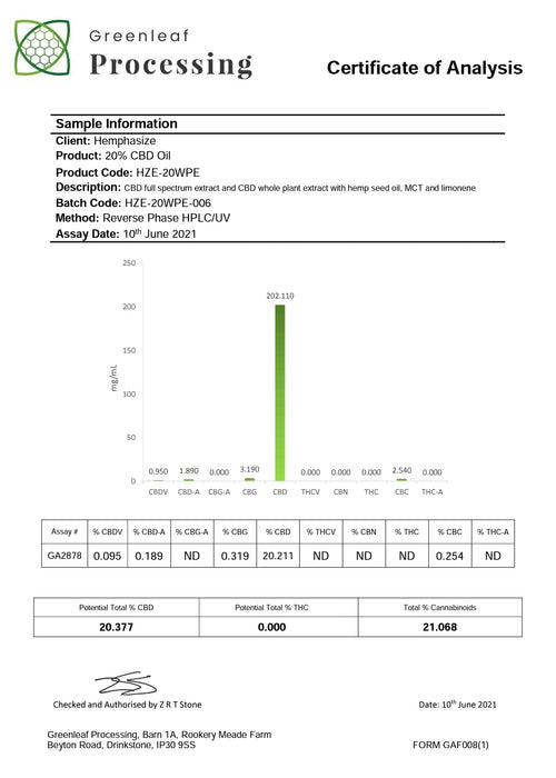 20% full spectrum CBD Oral Drops by HEMPHASIZE. Our CBD is derived from organically grown hemp in Guernsey and manufactured by who we believe are one of the best CBD processors here in the U.K. With them being grown and processed on our doorstep that means we're doing out bit for the environment too. HEMPHASIZE CBD Oils benefit from a concoction of MCT and Hemp seed oil for great absorption and maximum bioavailability and of course our oral drops are 100% natural. Our 20% oil contains the whole plant extract and with added CBG and Limonene terpenes not only does this oil uplift your mood but it gives a smooth citrus taste so you can actually enjoy taking your oil on a daily basis. Different batches can have a higher or lower viscosity or consistency due to a number of different factors but it's still the same premium 20% oil from the same processors, this can just very from time to time.