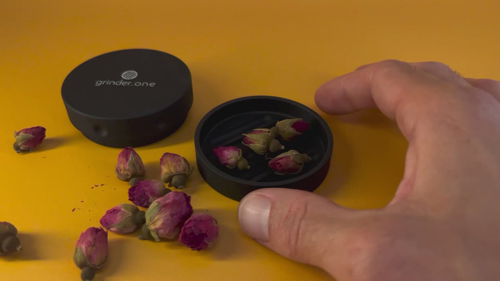 It is easily possible to process 2g of flower in just 4-5 twists, gently rubbing the flower or herbal material into smaller pieces that preserves the terpenes. Please see the grinder scale image for details that will help you decide the level of grind that you desire. The design has been made sure to allow for the smallest amount of material to be processed in order to allow precise dosing control, additionally, there is a storage section in the top of the unit that enables you to store excess for later on.